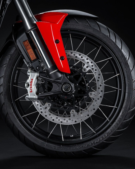 - 120/70-19″ and 170/60-17″ spoked wheels with Pirelli SCORPION™ Trail II tyres