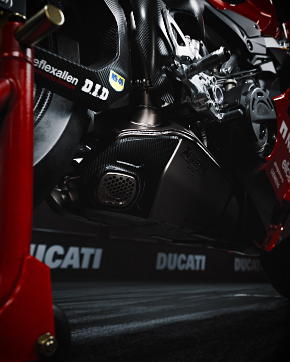 Carbon fiber rims, STM-EVO SBK dry clutch and homologated Akrapovič silencer