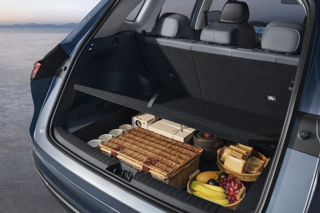 In terms of space utilization, the Geely EX5 EM-i leverages the GEA Architecture to boost its 2755mm ultra-long wheelbase to achieve an industry-leading 84.3% space efficiency. Rear passengers enjoy generous headroom, shoulder room, knee room, and legroom for a spacious and comfortable ride. Thoughtfully integrated throughout the cabin are over 30 clever storage solutions. The trunk offers a standard 428L capacity, complemented by a 100L hidden underfloor compartment. With the rear seats folded down, cargo space expands to 2065L, perfectly balancing daily utility and long-distance travel needs.