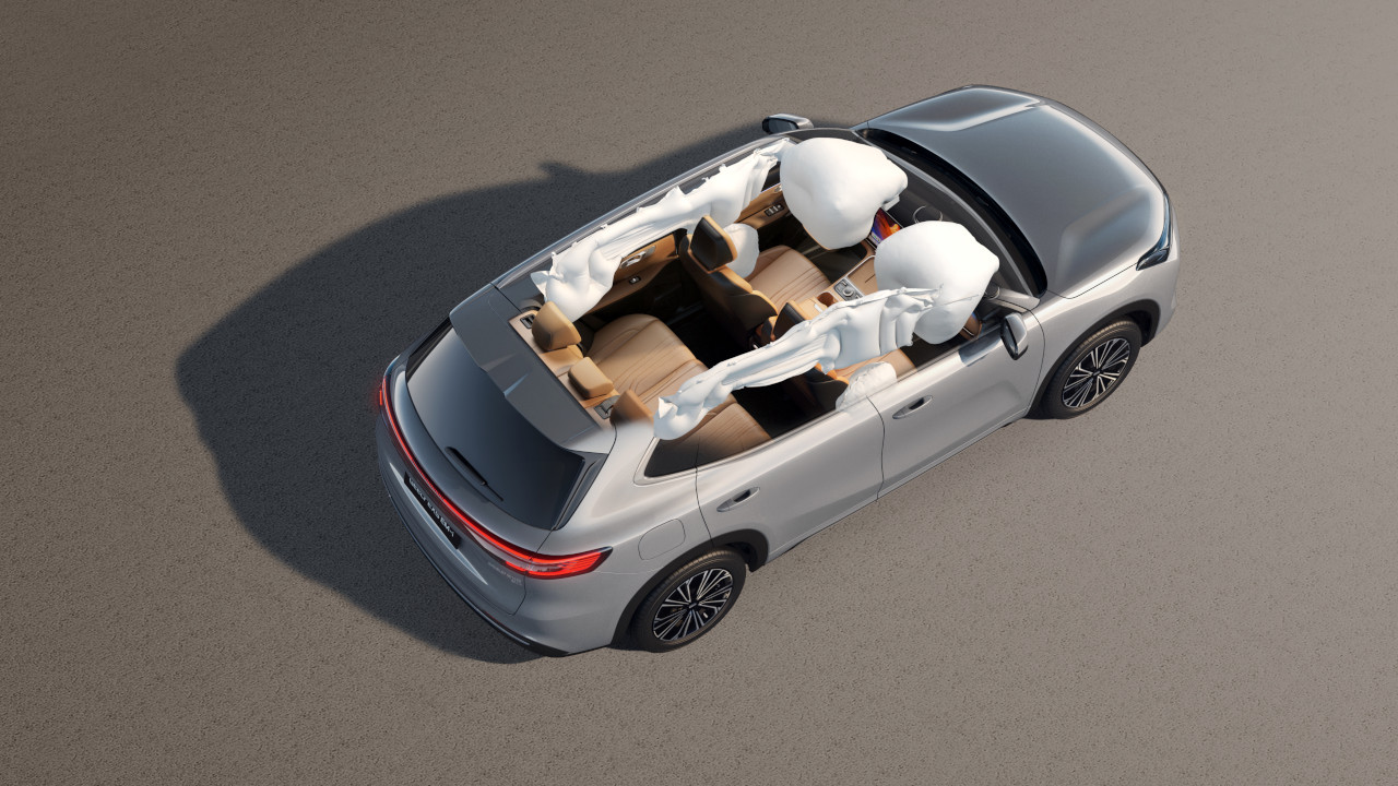 Built on the advanced GEA architecture, its oil-electric isolation safety design inherits Geely’s eight high-quality vehicle safety structures. The classic cloverleaf force-dispersing concept ingeniously redirects 44.5% of frontal impact forces to the sides while absorbing 39.7% transmitted by the subframe. Through its proprietary “six horizontal, four vertical” fuel-electric safety cell structure and 360-degree six-ring collision protection system, it builds an impenetrable fortress for the fuel tank and battery pack. Standard equipment includes six airbags, featuring integrated front and rear side curtain airbags. Both the driver’s airbag (55L) and front passenger airbag (105L) employ large-volume designs for faster inflation, delivering comprehensive collision protection for occupants.